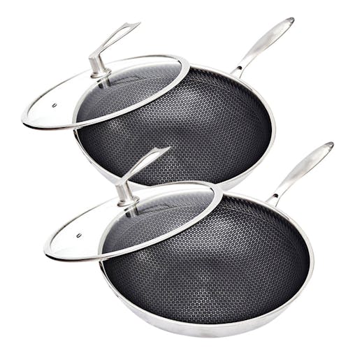 SOGA 2X 32cm Stainless Steel Tri-Ply Frying Cooking Fry Pan Textured Non Stick Interior Skillet with Glass Lid