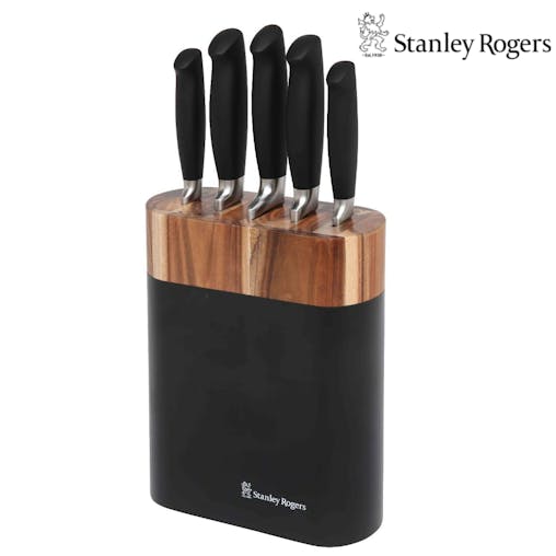 Stanley Rogers Acacia Knife Block 6 Piece Black Oval Knives 6Pc