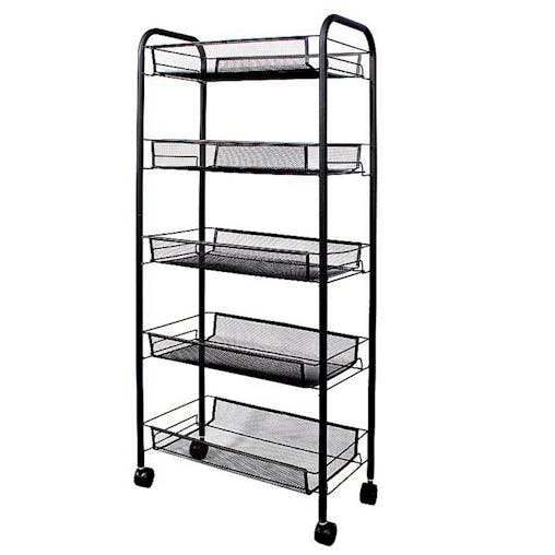 SOGA 5 Tier Steel Black Bee Mesh Kitchen Cart Multi-Functional Shelves Storage Organizer with Wheels