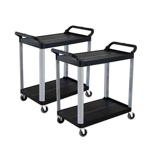 SOGA 2-Pack 2-Tier Portable Kitchen Trolley Cart with Wheels 845x430x940mm Black