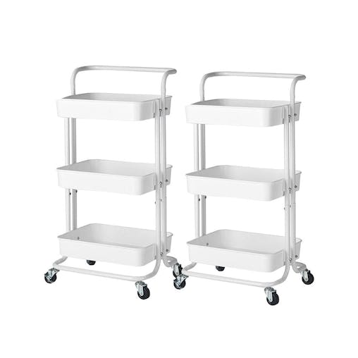 SOGA 2X 3 Tier Steel White Movable Kitchen Cart Multi-Functional Shelves Storage Organizer with Wheels