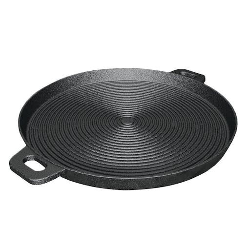 SOGA 35cm Round Ribbed Cast Iron Frying Pan Skillet Steak Sizzle Platter with Handle