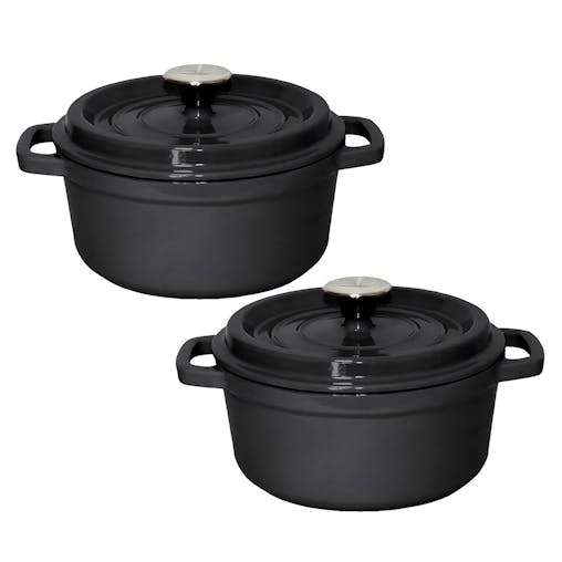SOGA 2X Cast Iron 24cm Stewpot Casserole Stew Cooking Pot With Lid Black