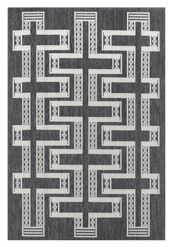 Teyona Charcoal and Ivory Tribal Flatweave Indoor Outdoor Rug