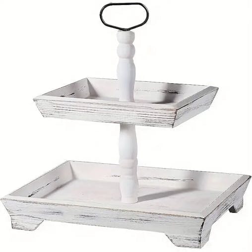 NNETM Rustic Wood Tiered Tray Stand - Farmhouse Chic Daily Decor