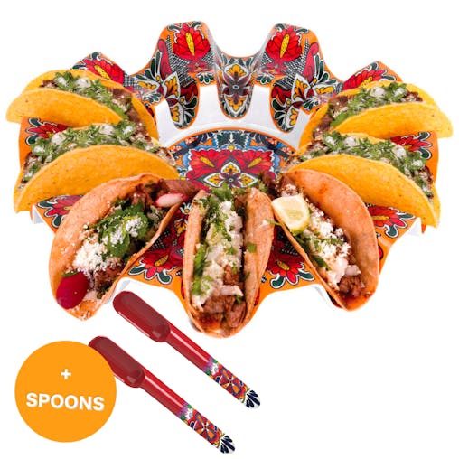 New Prepara Taco Carousel Holder Stand & Taco Spoon Set Of 2