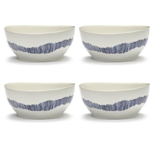 Ottolenghi Feast White With Blue Stripes Bowls 16cm | Set of 4